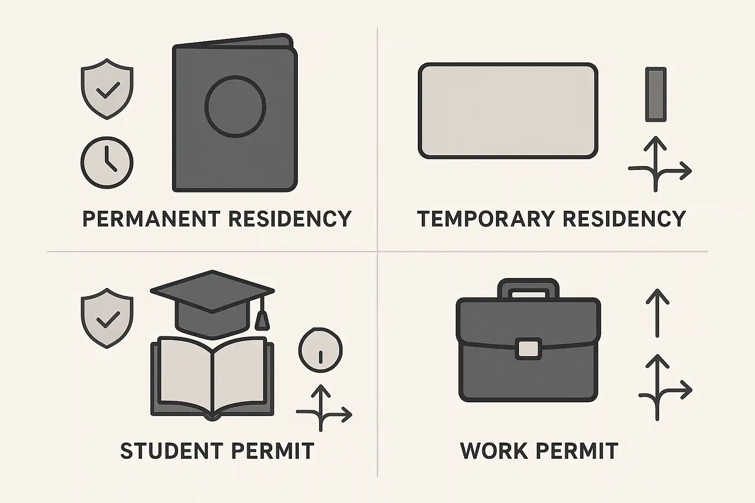 در این بخش، چارچوب حقوقی انواع اقامت کانادا تشریح میشود و سپس به چهار مسیر رایج پرداخته خواهد شد. ابتدا مفهوم اقامت دائم و حقوق همراه آن شرح داده میشود، سپس به اقامت موقت، دانشجویی و کاری میرسیم تا تصویر کاملی از انتخابها شکل بگیرد.