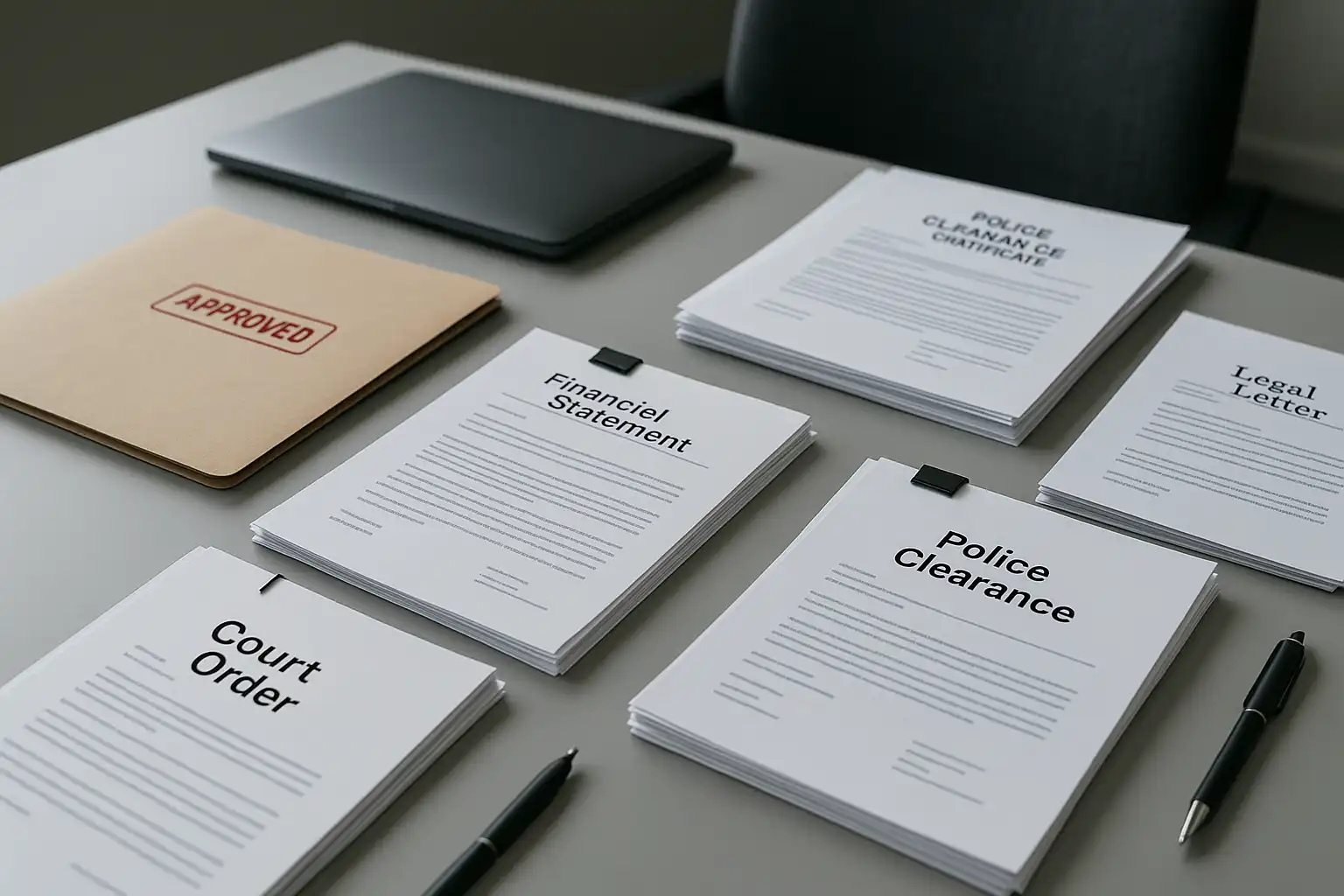 گواهی عدم سوء پیشینه جدید، احکام دادگاه مربوط به رفع اثر سوء پیشینه، اسناد شرکت در برنامههای بازپروری، و نامههای توصیه کلیدی هستند. ترجمه رسمی مدارک برای ارائه به سفارت الزامی است.