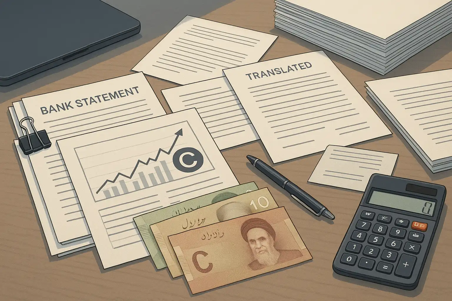 دریافت و ترجمه صحیح مدارک مالی، نقش تعیینکنندهای در پذیرش درخواست ویزای کانادا دارد. هر مدرکی که بهدرستی ارائه نشود، میتواند باعث رد پرونده گردد. در ادامه، مهمترین اسناد مورد نیاز برای محاسبه تمکن مالی ویزای کانادا و شرایط پذیرفته شدن آنها را بررسی میکنیم.