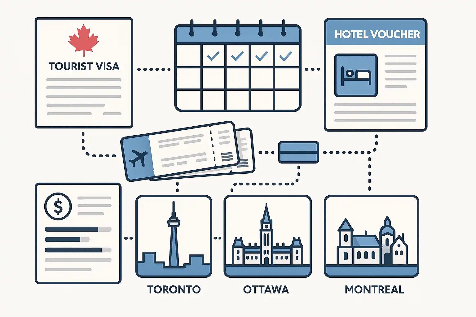 برنامه سفر ویزای توریستی کانادا باید دقیق، مستند و منسجم باشد. ارائه جدول روزانه، شرح فعالیتها و بازدیدها، همراه با مدارک رزرو و مالی معتبر، شانس تأیید ویزای شما را افزایش میدهد. تطبیق کامل اطلاعات برنامه سفر با سایر مدارک مانند تمکن مالی و وابستگی خانوادگی رمز موفقیت شماست.